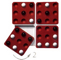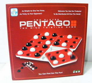 Pentago is a fast and fun strategy game that is both simple and sophisticated. The object of the game is to create a row of five marbles anywhere on the board. The mind twisting part is that you'll twist one of the four game blocks as part of your move. This causes the game to dynamically change, making for a fun and challenging game experience, both for beginners and masters alike. Play duration is 3 to 30 minutes. Seconds to Learn- It takes just under a minute to learn how to play Pentago, as it's a basic five-in-a-row game, with a twist. Fun to Play- Pentago is immediately fun for beginners and continues to be fun and challenging for intermadiate players. Years to Master-As you become a master Pentago player, the style of play, spatial orientation techniques and strategies get perplexity complex. Deep logic and skill is required to conquer another master player. Pentago is a game that comes from Sweden. Sweden is a nation that is very clever and enjoys a sense of simplicity. Thus it's no surprising that the Swedes would create a game that is so simple and stylistic, yet very smart and deep with strategy and logic. Pentago has won the prestigious Swedish award "Game of the Year" in 2005 along with several other awards of excellence.